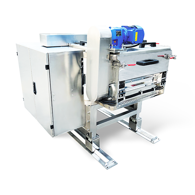 LCD系列輥式壓片機該系列壓片機結(jié)構(gòu)緊湊的輥式壓片機,由擠壓輥、超大直徑的冷卻輥、高強度德國輸送帶和破碎組成;新結(jié)構(gòu)的輸送帶可在幾分鐘內(nèi)從側(cè)面取出清潔或者更換,破碎機構(gòu)可旋轉(zhuǎn)打開,方便清潔。